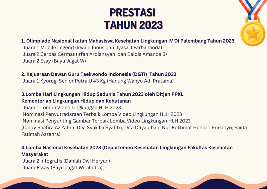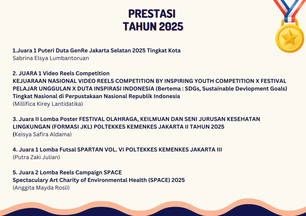 Terdapat 2 Jenis Prestasi yang didapat oleh Mahasiswa Jurusan Kesehatan Lingkungan: