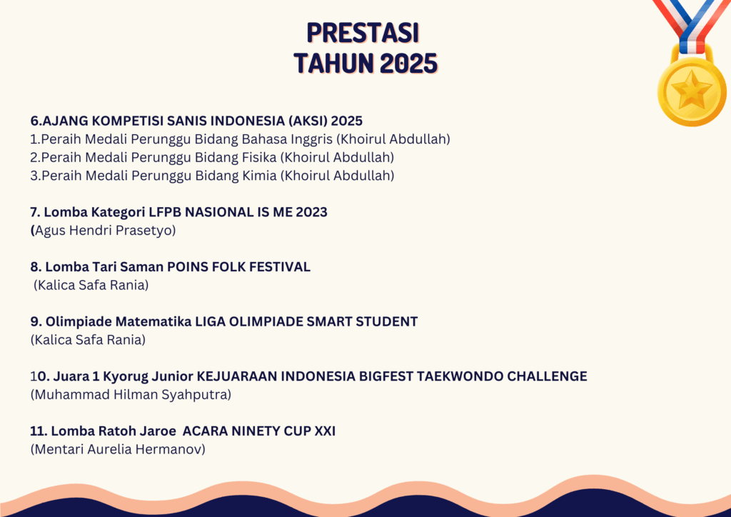 - Prestasi Akademik (juara kompetisi akademik, debat, olimpiade dan publikasi ilmiah)